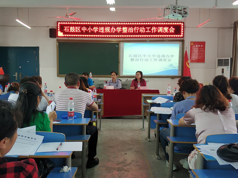 5月17日下午,石鼓区教育局在建设新村小学多媒体教室召开石鼓区中小学校违规办学整治行动工作调度会。区教育局相关股室负责人、全区各中小学校长等参加会议。