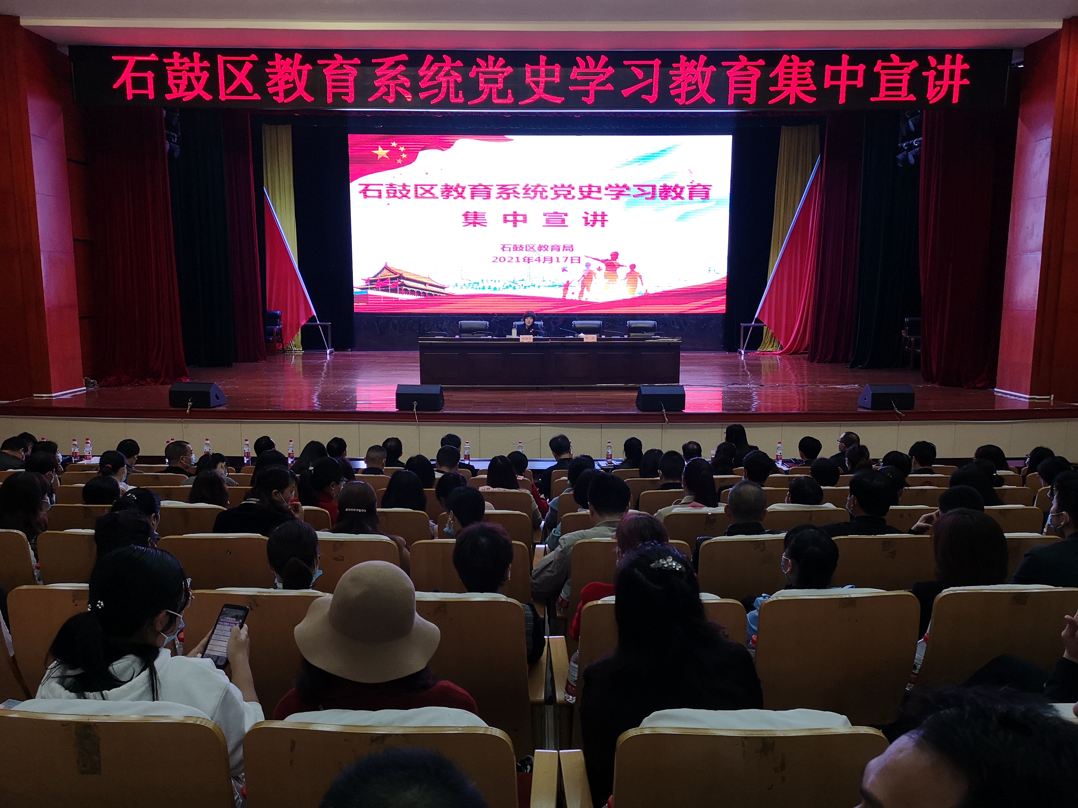4月17日上午,石鼓区教育系统举行党史学习教育第一次集中宣讲暨教师思想政治教育全员培训,为全区教师深入开展党史学习教育、进一步提升职业道德素养,带来了一场内容丰富、感悟深刻的身心洗礼。市政协副主席、石鼓区副区长谢宏主持活动,石鼓区委副书记谢海蓉作党史学习教育宣讲,湖南省中小学教师发展中心师德建设与师资培养科科长黄佑生作专题讲座。