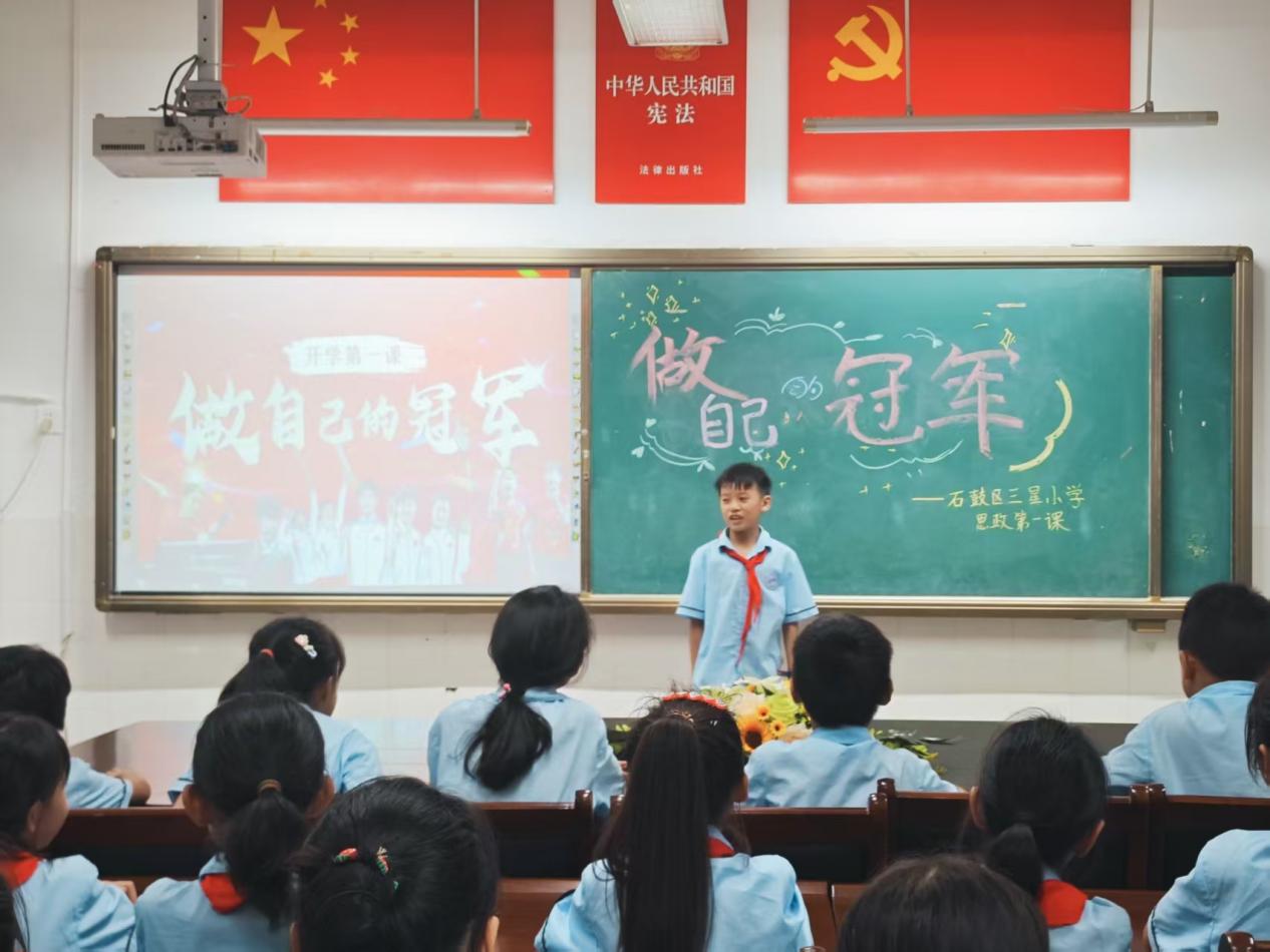 石鼓区三星小学创建于1949年(其前身是三官町小学),学校坐落在角山镇三星村三字墙组,是一所具有良好的社会声望的名牌老校。在角山镇中心学校领导班子的带领下,我校领导班子汇集全校师生的智慧拟定了办学宗旨为"德育为首、质量立校、乐教乐学",将"德育先行、全面发展、快乐成长"作为三星小学的办学特色。学校师资力量雄厚,办学条件优良。学校占地面积8450平方米,总建筑面积3362平方米,体育用地面积1680平方米,绿化面积260平方米,现有9个教学班,学生298人,在编教师21人,其中高级教师4人,中级教师9人。学校用房布局合理、设施完善、使用方便,拥有现代化教学楼、心理咨询室、图书室、阅览室、音乐室、计算机室等十间教学功能室,学校环境优美,育人氛围浓厚。