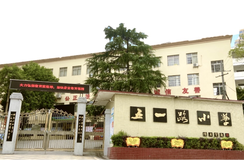 石鼓区五一路小学创办于1914年,曾命名为"仁爱小学"、"衡阳市第四完全小学"、"仓前街小学"、"永红小学",直到1979年才正式定名为"五一路小学",并一直沿用至今。学校位于石鼓区望城路40号,学校坐落于美丽的君子山脚下,毗邻湘水左岸,雄踞丘岗,绿树环抱,常年花香,环境优雅,现有30个教学班,师生1600余名。学校拥有一支师德高尚、作风优良、治学严谨、结构合理的教师队伍,共有在编教师65人,高级教师7人,一级教师31人。