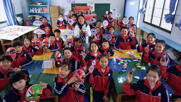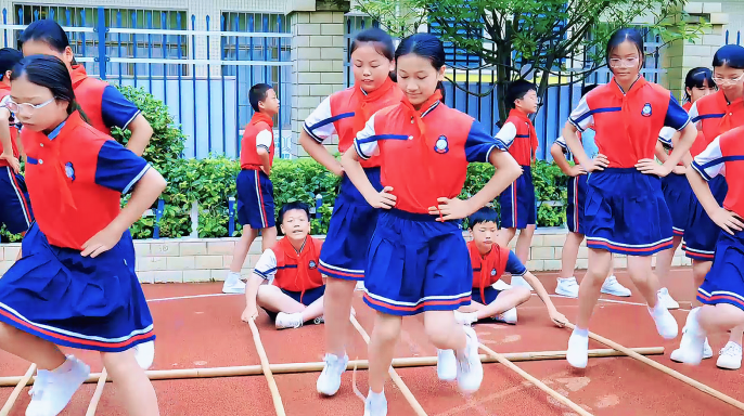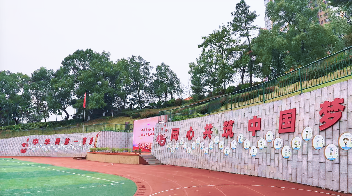 五一路小学系统规划环境育人要素,将校园整体打造为一个立体、生动、互动的中华民族共同体意识教育空间,实现从"视觉呈现"到"精神融入"的深度浸润。步入五一路小学,浓郁的民族团结气息扑面而来。长达50米的"民族同心文化墙",以生动图文展现56个民族风采,成为一部立体的、会"说话"的民族团结教科书。在五一路小学,铸牢中华民族共同体意识的教育已成为一场全员参与、全程渗透、全方位浸润的生动实践,文化墙前的驻足、课堂上的共鸣、游戏中的协作、实践后的感悟,共同汇聚成滋养"石榴籽"的肥沃土壤。"三位一体"的育人体系,如春风化雨,悄然滋养着每一颗"石榴籽",让民族团结之花在校园绚烂绽放。