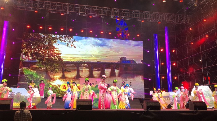 6月15日,在2018年衡阳市“文化和自然遗产日”非遗专题晚会上,由衡阳衡州花鼓戏艺术有限责任公司杨小兰(国家级传承人) 、廖寒梅(国家级传承人)、 李红(市级传承人)、 王蓉蓉 与“非遗进校园”教学的20名演武坪小学学生共同演绎了衡阳花鼓戏《颂八景》,此次汇报演出旨在传递非遗文化传承精神,展现演武坪小学“非遗进校园”实践成果,助力衡阳创建“全国文明城市”。