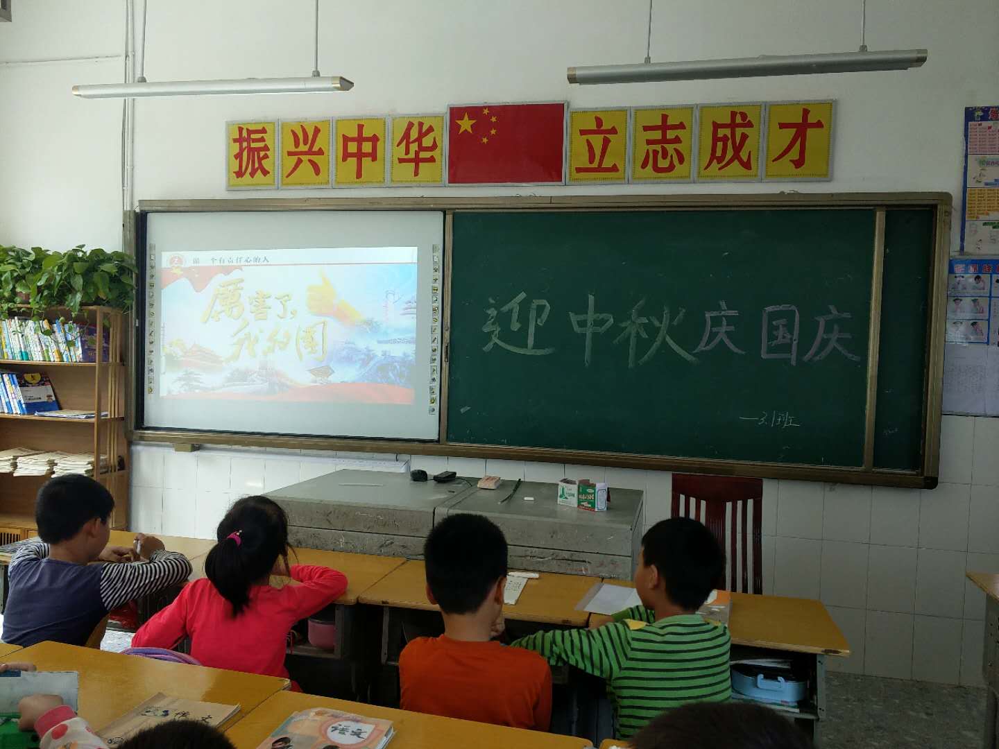 全体班级开展了"我们的节日·国庆"主题班会课。在班会课上,有的班级运用直观丰富的课件向同学们介绍了国庆节的由来,并以视频的形式进行新中国军史、党史、国史学习教育。另外,五、六年级以绘制"国庆"主题手抄报、黑板报形式来表达自己对祖国浓浓的爱意。