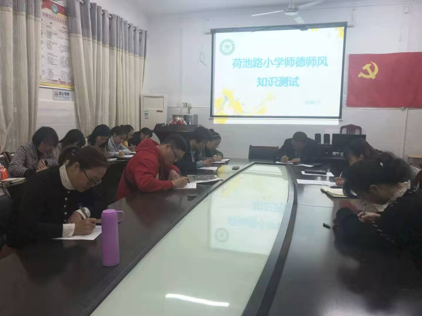 11月13日下午,荷池路小学组织全体教师开展师德师风专题测试活动,提高教师职业道德修养,规范教师职业道德行为,树立良好教育风尚。