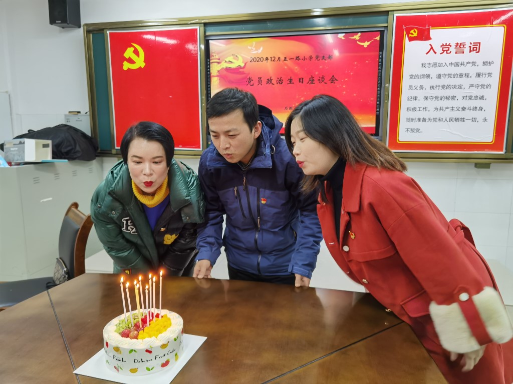 为认真学习宣传贯彻党的十九大和十九届五中全会精神,进一步增强党员荣誉感,责任感和使命感,发挥党员先锋模范作用,12月8日,五一路小学党支部开展了以“不忘初心、牢记使命”为主题的党员政治生日活动。