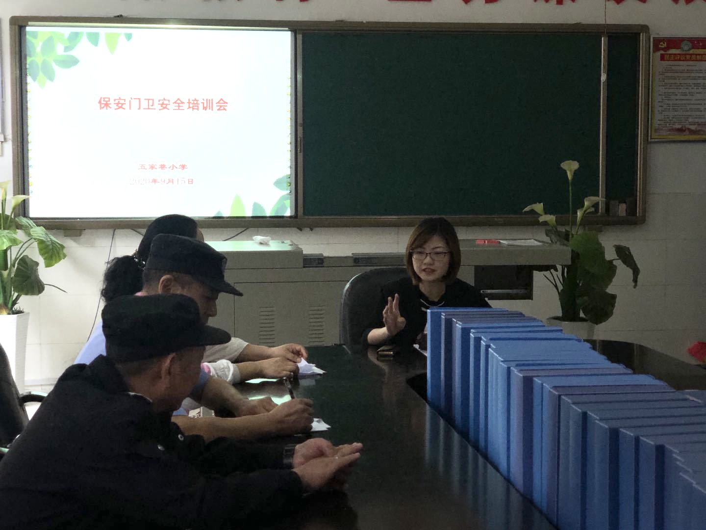 潇湘派出所吕警官、程警官参加了五家巷小学的保安门卫安全培训会议,在会上对学校保安进行了培训,强调了学校应及时进行全面安全排查,注意隐患,日常要特别仔细留意细节,以保证校园安全。