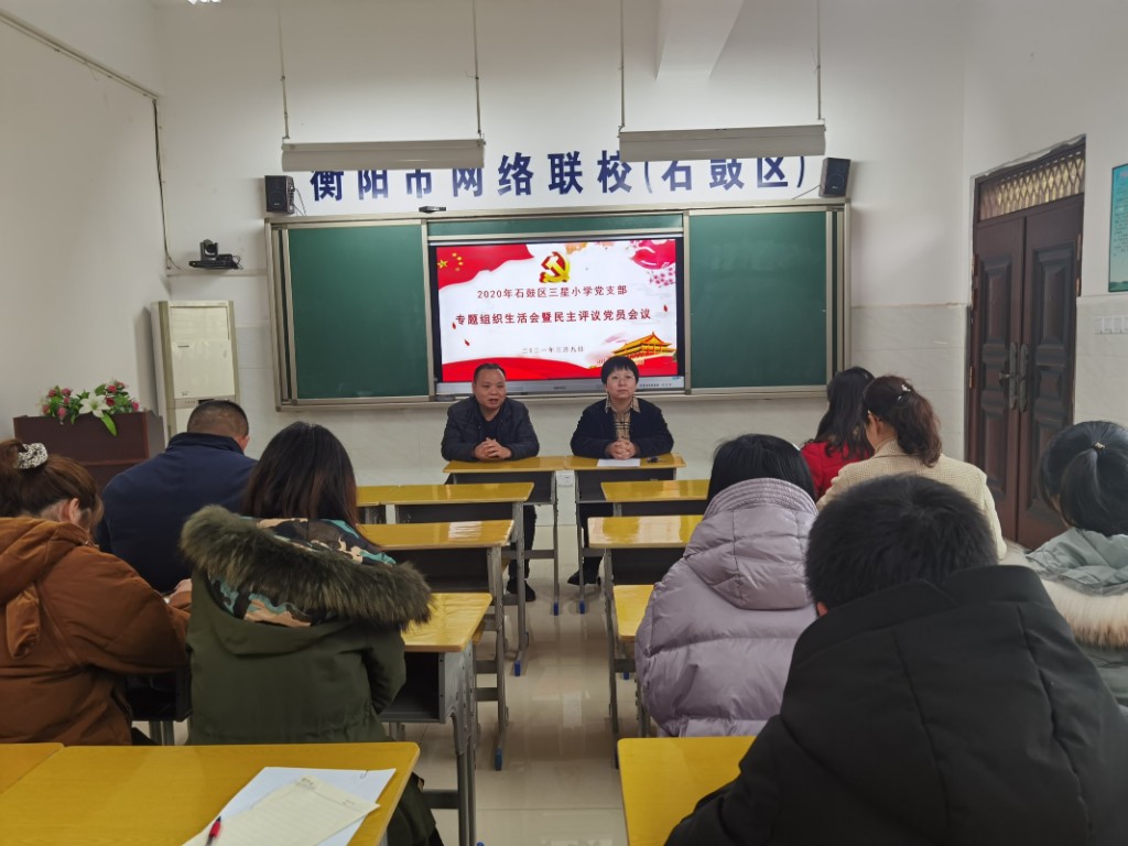 为深入学习贯彻习近平新时代中国特色社会主义思想和党的十九届五中全会精神,巩固深化"不忘初心、牢记使命"主题教育成果,提升基层党组织政治能力,根据党章和《中国共产党支部工作条例(试行)》等规定,石鼓区三星小学党支部于3月9日上午以"奋进新时代,勇做排头兵"为主题,召开2020年度组织生活会暨民主评议党员大会。