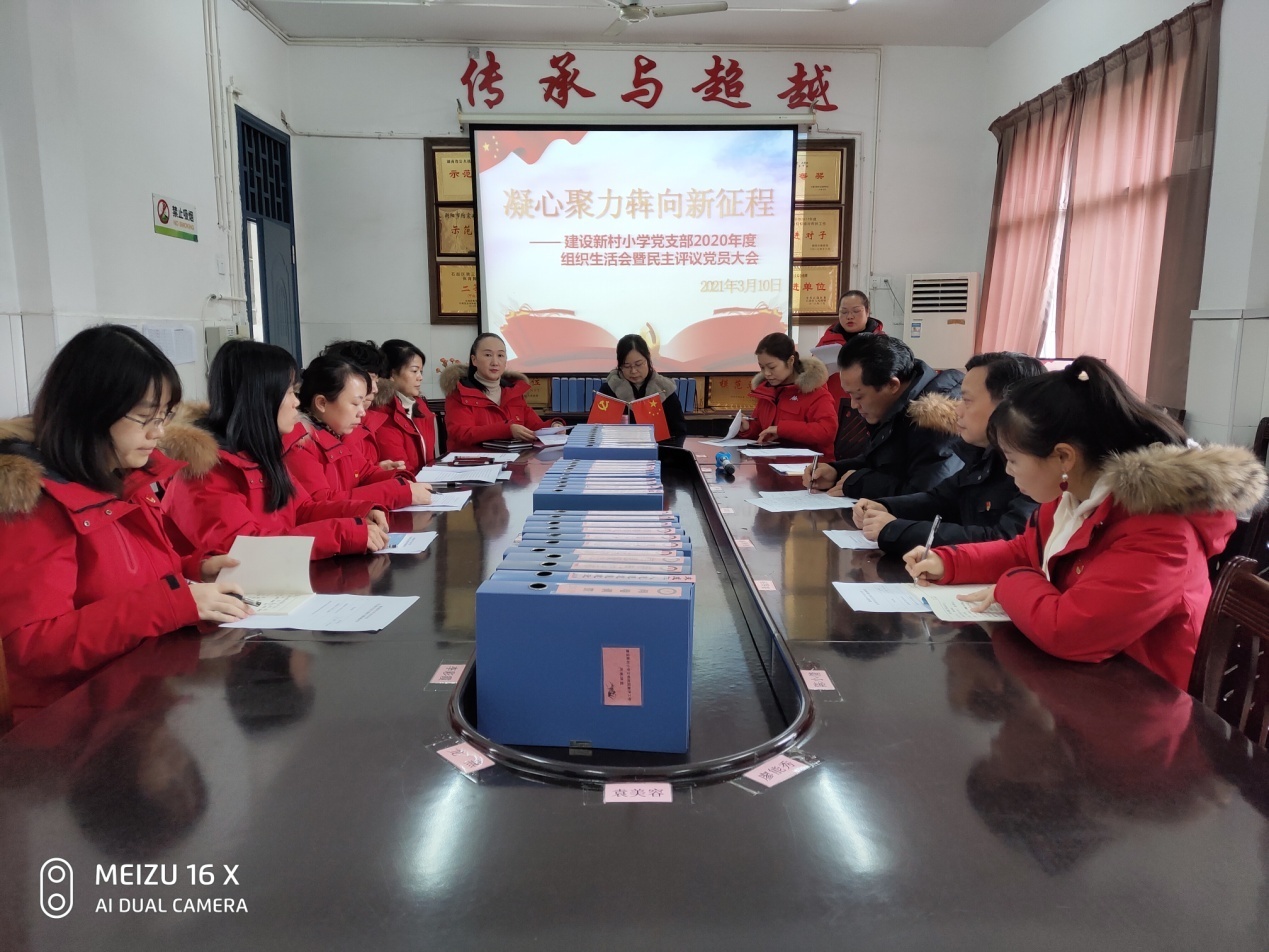 会上,党支部书记罗晓玲同志带领全体党员重温入党誓词,通报了建设新村小学党支部2020年度组织生活会会前准备情况、支部班子自查问题情况,提出了整改措施。接着带领全体党员集中解读了中共中央关于制定"十四五"规划和2035年远景目标《建议》:向第二个百年奋斗目标进军的行动指南。通过学习,全体党员准确把握了2035年远景目标和"十四五"时期我国发展的指导方针、主要目标、重要任务。随后,党支部书记代表支部委员会做述职报告,带头查摆自身存在的问题和不足,深剖问题根源,明确了努力方向和整改措施。其他党员依次开展实事求是、坦诚相见的批评和自我批评,既明确了整改措施,又凝聚了发展共识,达到了预期效果。联点领导欧阳芳玉同志对此次组织生活会进行点评,在肯定大家成绩和辛勤付出的同时,也要求全体党员加强政治理论学习,提升党性修养,起到示范带头作用,切实将党建工作融入教育教学工作。最后,全体党员本着公平公正客观的原则,实事求是地填写民主评议测评表。