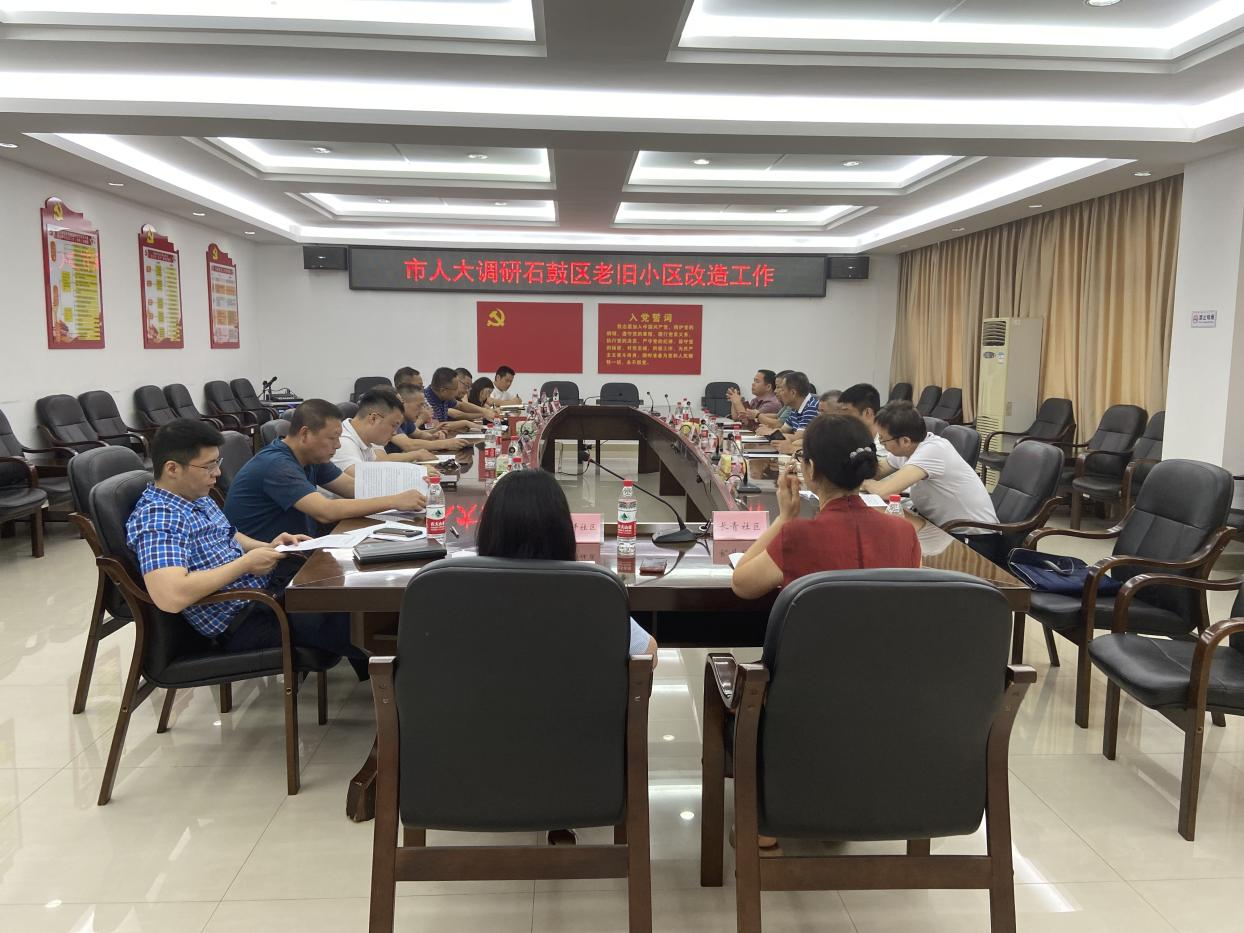 调研组实地调研了潇湘街道长青社区和司前社区陕西巷老旧小区等项目,听取了石鼓区政府老旧小区改造工作情况汇报,并与区发改局、区财政局、区住建局、区自然资源局、区城管执法局、区城建投主要负责同志、潇湘街道行政负责同志和人大代表座谈,听取意见和建议。