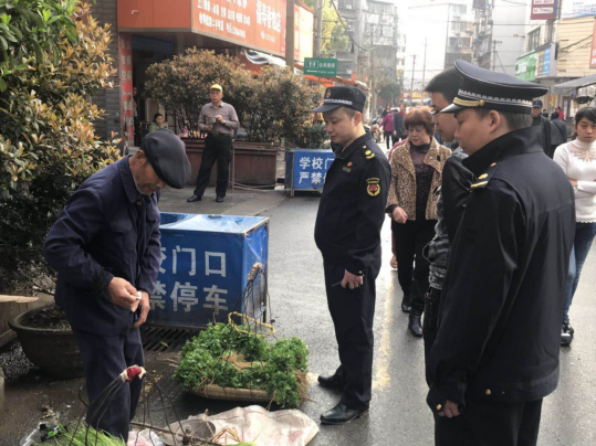 此次行动共出动城管执法人员40余人次,执法车辆4台次,规范门店占道经营行为10余家,规劝菜农到市场内销售20余起,教育违章人员20余人次。