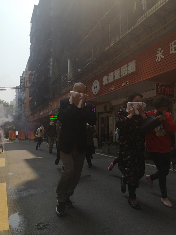 “空袭来了,大家有序撤离……”伴随着一阵阵警报声,演练现场总指挥长、人防办主任陈炜伟一声令下,石鼓区人民街道湘北社区百余居民冲出滚滚浓烟,用湿毛巾捂住口鼻,紧张有序地迅速疏散到安全地带。这是5月10日石鼓区人防办开展防空袭应急疏散演练活动现场。