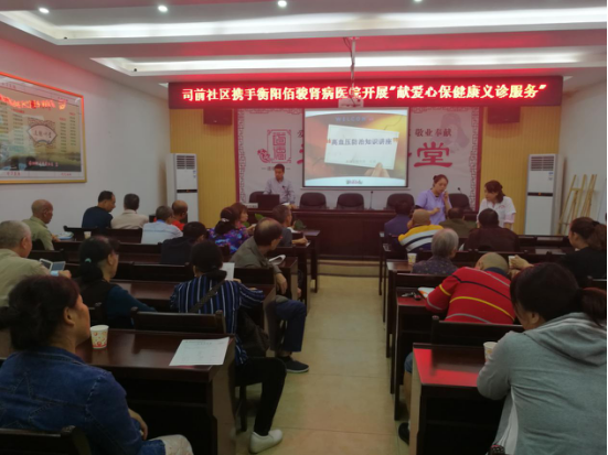 为增强全民健康意识,倡导健康生活方式,有效预防和控制高血压等慢性疾病,10月11日上午,司前社区结合全民学习周,携手衡阳佰骏肾病医院为辖区居民开展高血压防治健康知识讲座及义诊活动。