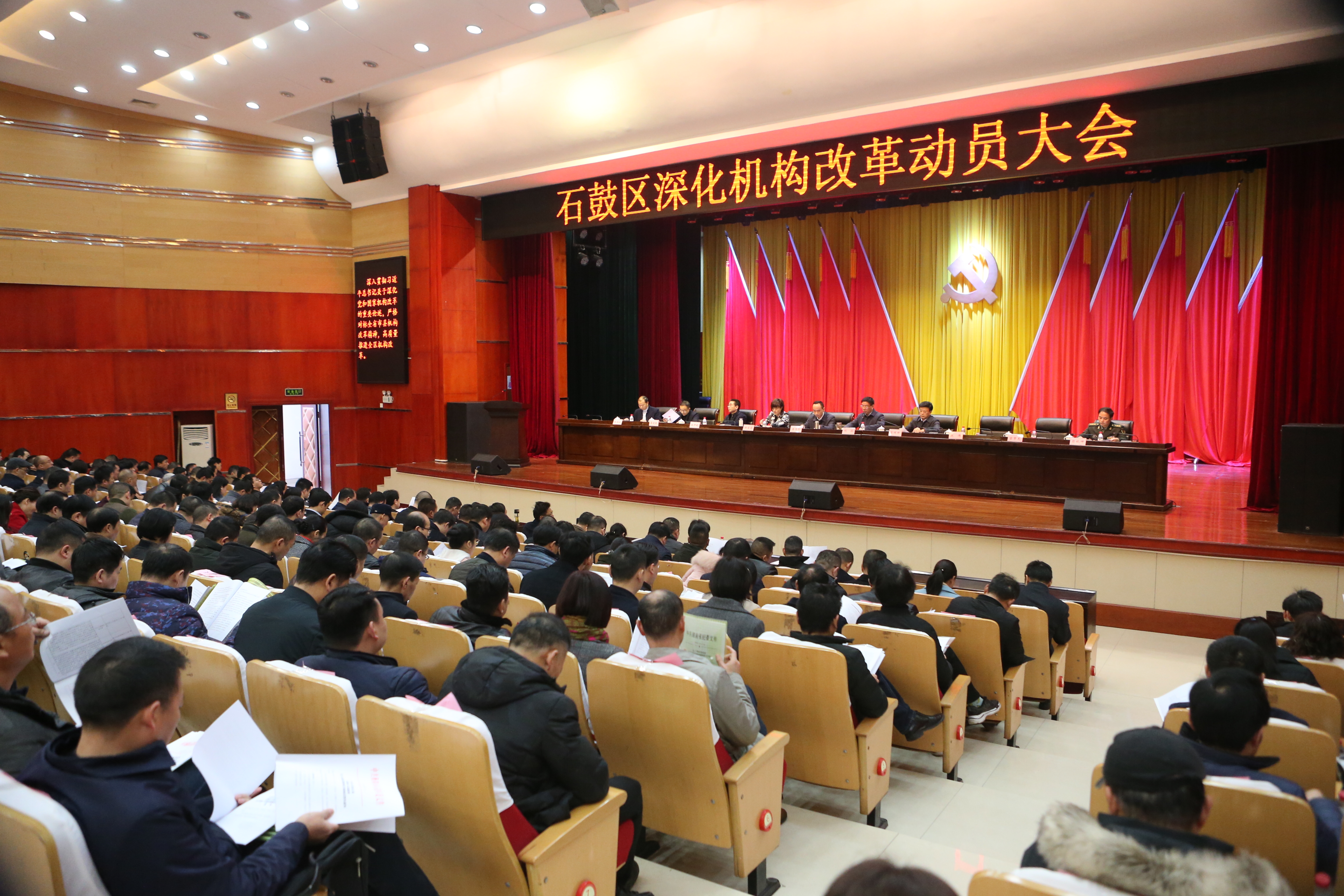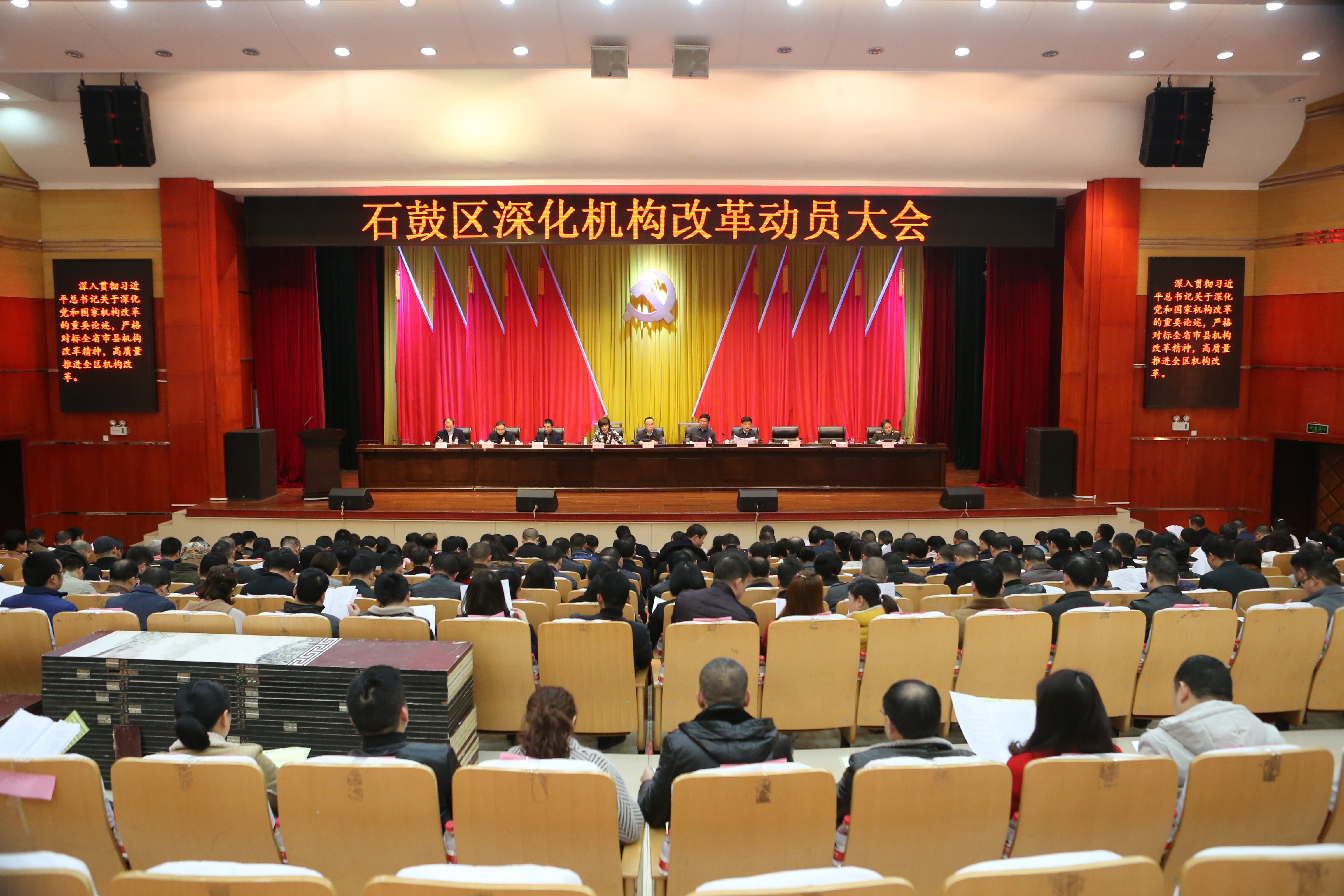 会议介绍了石鼓区深化机构改革主要内容,改革后,石鼓区共设置党政机构34个,其中,区委机构8个(纪检监察机关1个,工作机关7个),区政府工作部门26个;区人大常委会设置办事机构、工作机构2个,专门委员会6个;区政协设置办事机构1个,专门委员会5个。区委区政府直属事业单位6个。