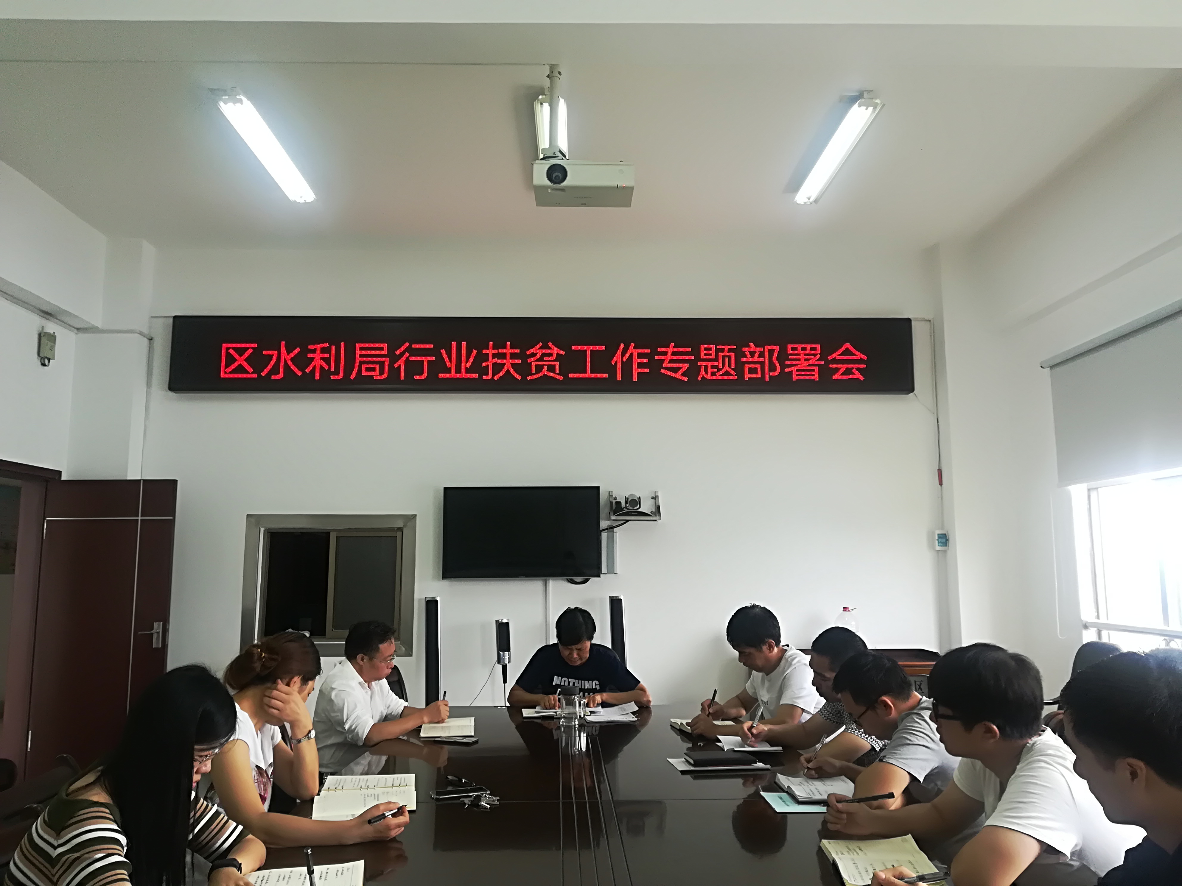 2018年9月25日,区水利局再次组织全体干部职工召开脱贫攻坚工作推进会,会上对脱贫攻坚政策进行再学习再巩固再提升,同时对农村饮水安全扶贫工作进行了专题调度和安排部署,会议要求全体干部职工对标任务,各负其责,保质保量,加快完成水利行业扶贫工作任务,为全区脱贫攻坚工作交上一份满意的答卷。