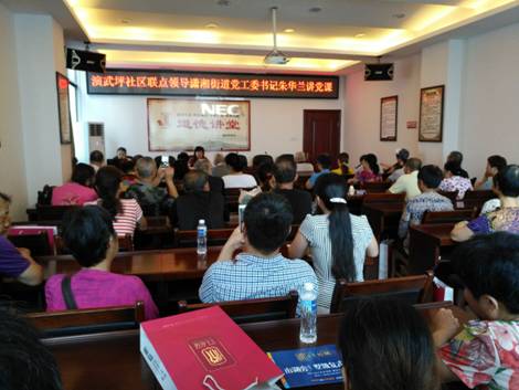 2日下午,潇湘街道党工委书记朱华兰为演武坪社区党员上了一堂意义颇丰的党课。此次党课以“文明创建添动力、党员带头争先锋、‘两学一做’见实效”为主题,号召社区党员争做文明创建的领头雁、排头兵,将每个基层党组织铸就一座文明创建的堡垒,让每个党员都成为一面文明创建的旗帜,构建“两学一做”新体系,切实做到党员联系群众、服务群众,推动党员志愿服务扎根基层,发扬共产党员的先锋模范带头作用,大力宣传文明、倡导文明,将创建宣传工作深入到每个楼栋、每层每户。(肖伟 宋倩萍)