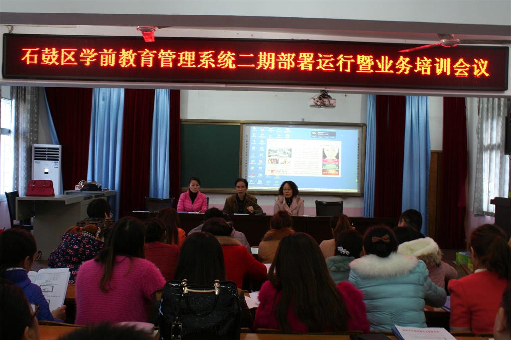 为贯彻落实《关于推进全国学前教育管理信息系统二期部署运行有关工作的通知》(湘教通[2014]434号),及时完成我区学前教育信息的录入工作,教文体局于12月4日在人民路小学多媒体教室召开了全区学前教育信息系统二期部署运行暨业务培训会议,参加此次会议的人员有幼儿园园长、各小学有附设学前班学校校长和信息管理员,培训人数达130余人。基教民教股副股长刘利红主持会议。