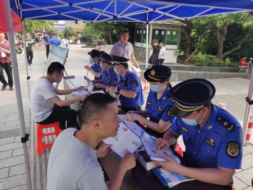 据悉,该局组织安排8台执法车辆、30余名队员到石鼓区莲湖广场,通过设置宣传展台,悬挂宣传横幅、摆放宣传展板、设置宣传咨询台、发放宣传手册等方式,向过往群众宣传《衡阳市城市市容和环境卫生管理条例》,并在宣传活动中就市民关心的占道经营、摊贩管理、垃圾处置、油烟污染、非机动车乱停乱放等热点问题与群众交流互动,答疑解惑,为衡阳市"创文创卫"工作打下坚实的基础。