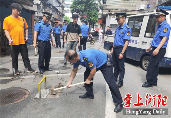 环城北路66号院落,一些居民圈占公共通道,地锁"挤"满小区乱象,经掌上衡阳客户端曝光后,石鼓区青山街道城管大队迅速组织力量,对"花式占车位"现象展开了集中整治清理执法行动,清理拆除50把地锁,恢复了居民院落的清爽面容。