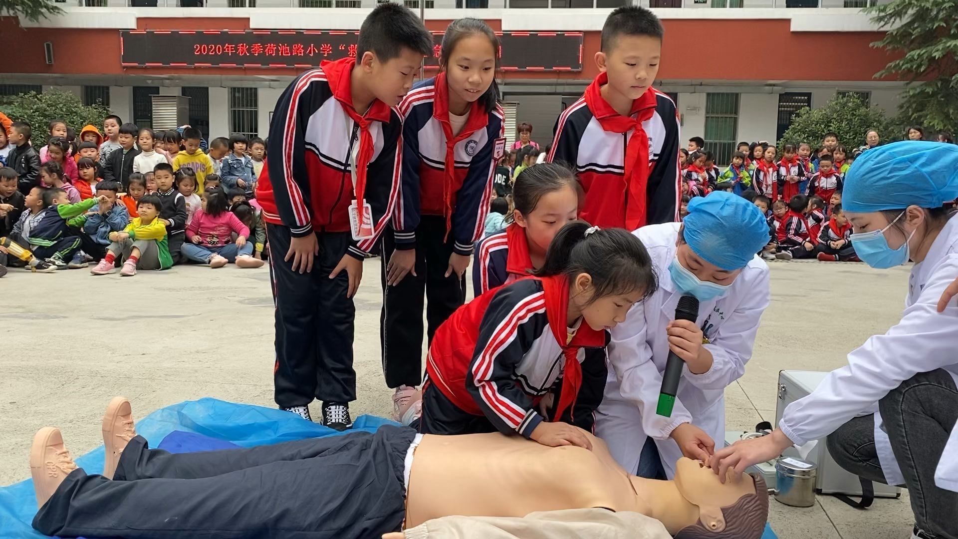 《湖南省现场救护条例》将在2020年11月1日正式施行,潇湘街道社区卫生服务中心联合辖区内荷池路小学在10月29日开展了以"救"在身边应急救护培训进学校活动。由潇湘街道社区卫生服务中心4名医务人员为荷池路小学在校900余名师生开展现场心肺复苏应急演练、意外伤害的应急救护、冬季新冠肺炎疫情防控知识讲座。