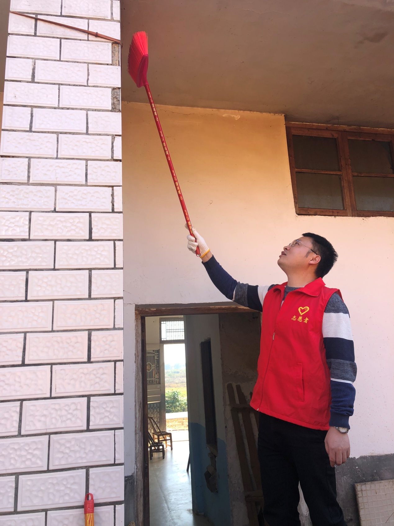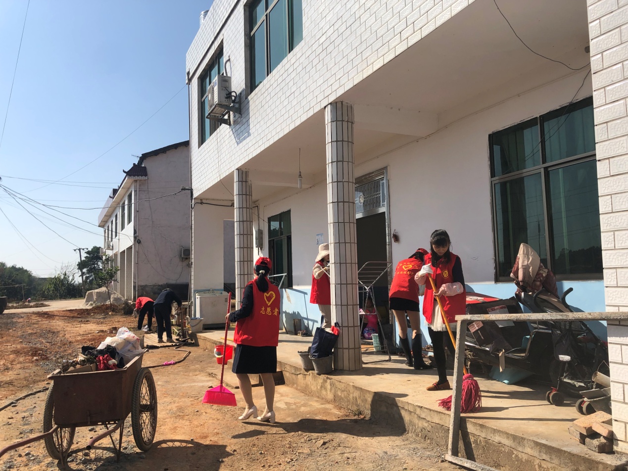 活动中,志愿者们不怕脏、不怕累,手持扫帚、抹布等工具,帮助贫困户杨阿姨打扫庭院、清理房后垃圾、擦拭门窗桌椅,整理摆放贫困户家中生活物品,为贫困户创造干净、整洁、卫生的生活环境。在打扫卫生的同时,尹磊书记与贫困户亲切交谈,详细地询问杨阿姨的生活和身体状况,了解杨阿姨的所想、所感、所需,根据现行政策给予脱贫指导,并叮嘱贫困户一定要养成良好的卫生习惯,让自己不仅在物质上脱贫,更要在精神上实现脱贫。