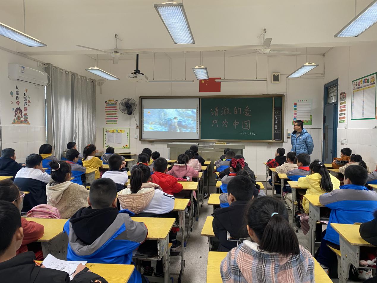 "对边防军人来说,他们对祖国有清澈的爱,为什么爱会是清澈的呢?答案很简单,他们勇敢地守护着祖国的边境,他们的意志就像一个过滤器,把害怕过滤掉,只留下清澈的心。孩子们,请记住,所有边防战士都值得你们的尊敬!"演武坪小学黄银香书记通过学校校园广播,把边防战士的故事讲给学生听。全体队员还通过中印边境事件实录视频,一起回顾了几名边防战士对抗外军的英勇事迹。小小的画面,激昂的声音,让队员们切身感受边防战士们守卫国土、守卫人民的决心和艰辛,崇拜与敬畏之心也油然而生。