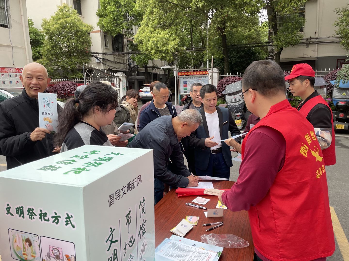 4月1日,西湖一村社区联合衡阳市退役军人事务局的党员志愿者,共同开展"倡导绿色殡葬,推行文明祭祀"宣传活动,大力宣传低碳环保、绿色殡葬、文明祭祀。