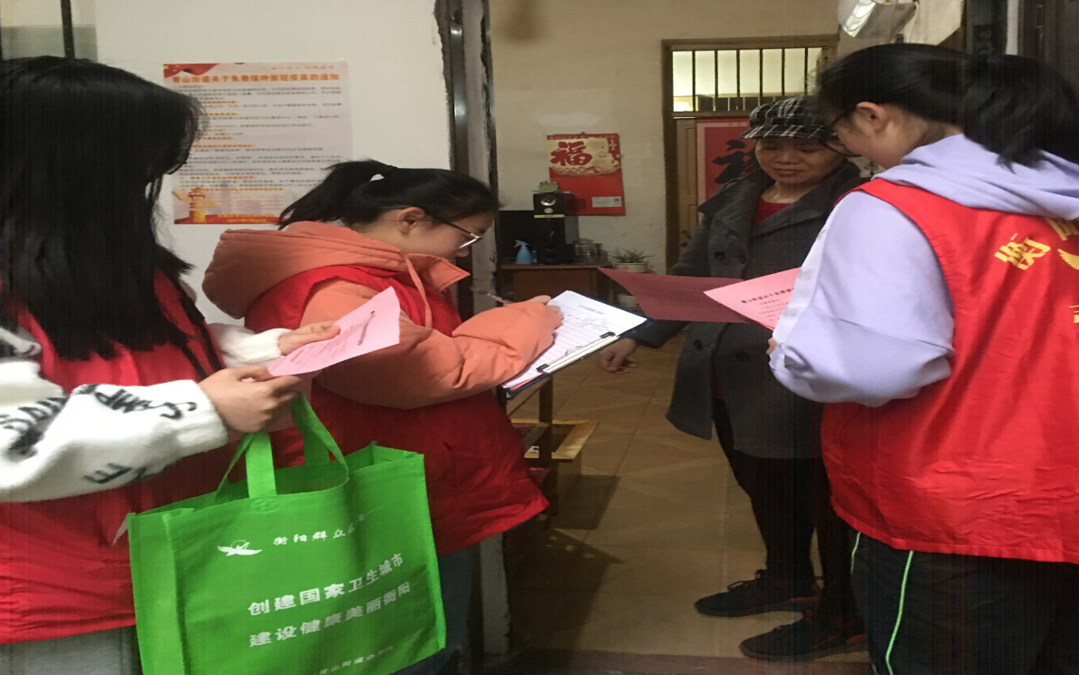 社区工作人员和"衡阳群众"志愿者们辖区内张贴发放了新型冠状病毒健康科普知识宣传单、疫苗预约等宣传资料,对辖区门店等进行逐户摸排宣传。同时,通过悬挂横幅、微信群等多种方式进行新冠疫苗接种的宣传工作。