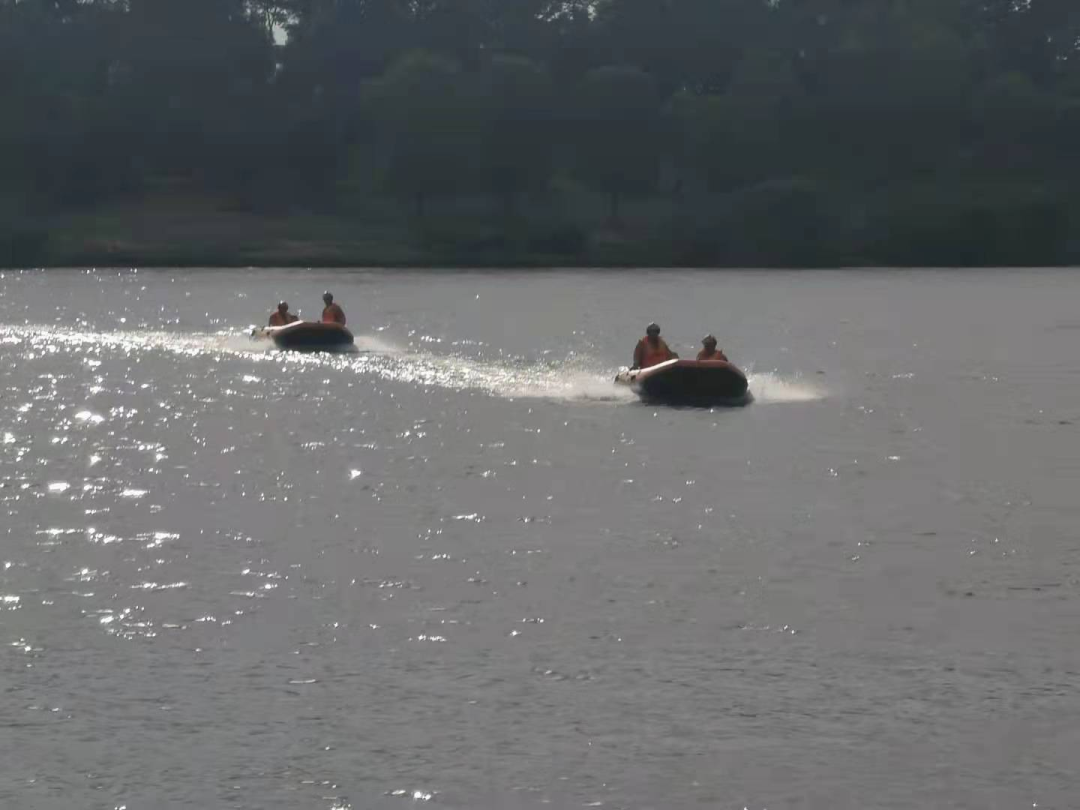 演练现场,石鼓区消防救援大队队员驾驶的4艘橡皮艇从远处劈波斩浪而来,正在对受困群众进行紧急转移.