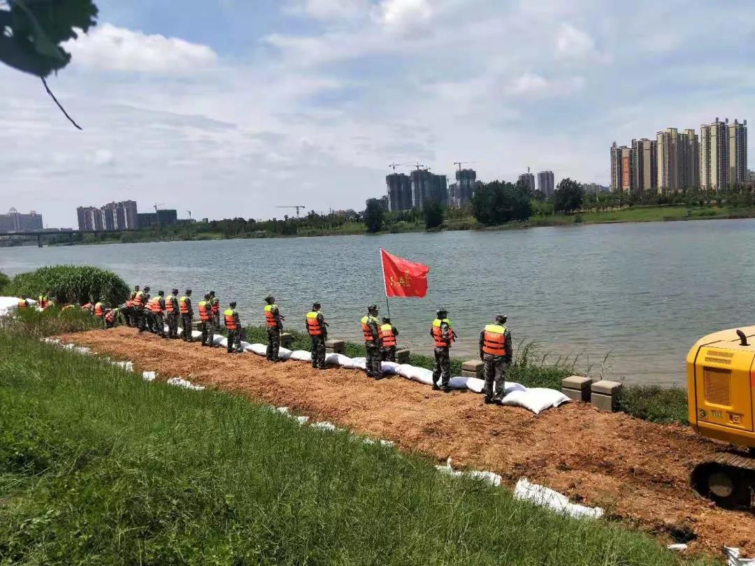 快速构筑子堤和转移安置受困群众是确保河堤及受困群众生命财产安全在主汛期所采取的一种紧急处置措施,6月16日下午,由石鼓区综合应急救援队等单位参加的衡阳市2021年军地联合应急演练正在耒水河畔的王江渡演练场如火如荼展开。