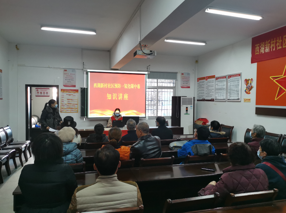 结合社区实际,西湖新村社区工作人员还对孤寡老人、独居老人、残障人士家庭、危房居民等重点关注人群进行走访和安全宣传。12月24日,西湖新村社区组织辖区内30余位居民代表开展了一场“预防一氧化碳中毒”的安全知识讲座,普及了预防和急救知识。