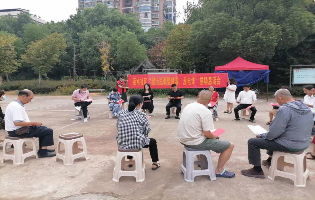 9月22日上午,蒸水社区召开了"综治民调暨禁毒、反电诈"屋场恳谈会,利用全民核酸检测契机,在西湖公园东门向居民发放了综治民调、禁毒民调宣传资料。