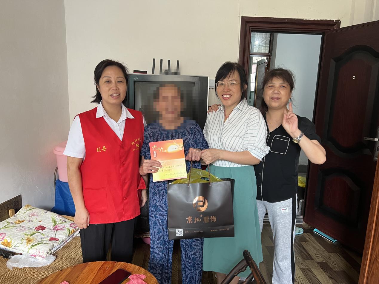"重阳"佳节来临之际,为弘扬尊老敬老的中华美德,把禁毒宣传融入到尊老敬老中来,荷池路社区联合京枫中老年店开展了重阳节走访慰问涉毒家庭老人活动。