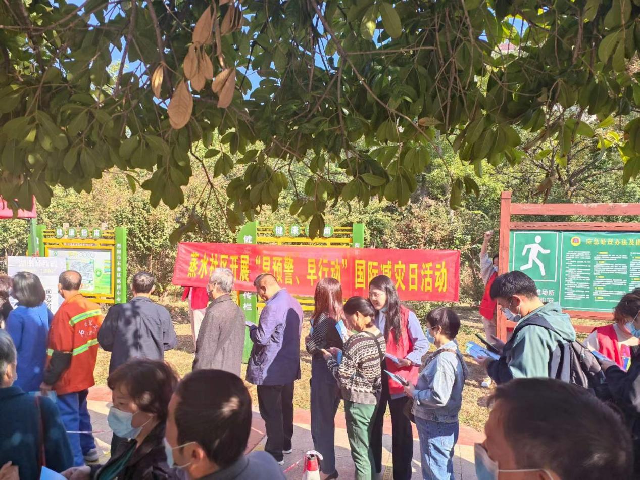 在第33个"国际减灾日"之际,10月13日,蒸水社区组织党员志愿者在西湖公园开展"国际减灾日"宣传活动。