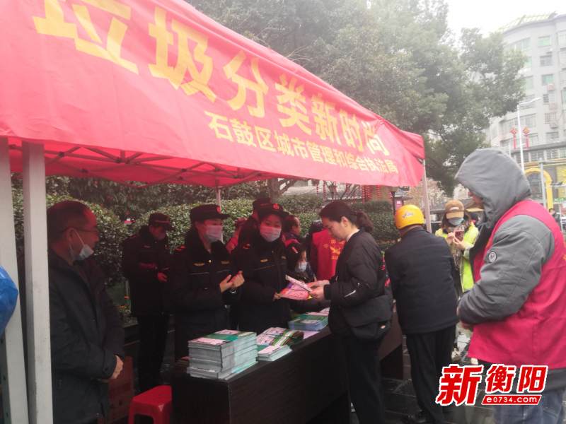 在石鼓区的背街小巷,石鼓区城管局工作人员走街串巷倡导绿色环保低碳生活方式。他们手持生活垃圾分类投放指南,一户一户走进商家店铺,向居民群众介绍垃圾分类知识及投放标准,通过"入户科普""上门送学"的方式,解答了居民对于垃圾混投、乱投、错投等存在的知识误区,倡议大家共同践行垃圾分类,有效提升了辖区居民对生活垃圾分类工作的重视和支持,让我们的城区更美丽、让我们的城市更文明。
