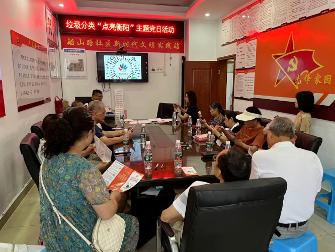 为进一步发挥党建引领垃圾分类工作,深化垃圾分类意识,营造党员带头创先争优的良好氛围,7月5日,船山路社区组织支部老党员及入党积极分子开展垃圾分类“点亮衡阳”主题活动。