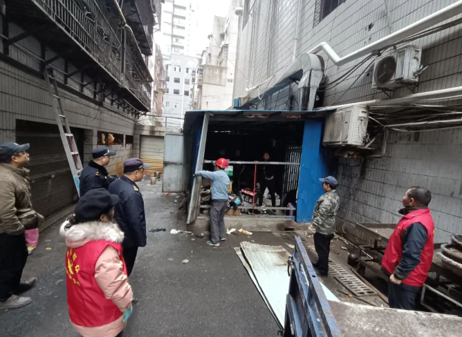 近日,青山街道城管大队联合船山路社区工作人员对位于船山路40号的一处违章建筑进行了依法拆除。这座违章建筑占地约50平方米,位于船山路40号大楼旁的空地上,是该楼一层饭店经营户搭建的遮雨棚和“营业房”。该建筑不仅存在安全隐患,还侵占了居民的公共空间,给周边居民的生活带来了诸多不便。