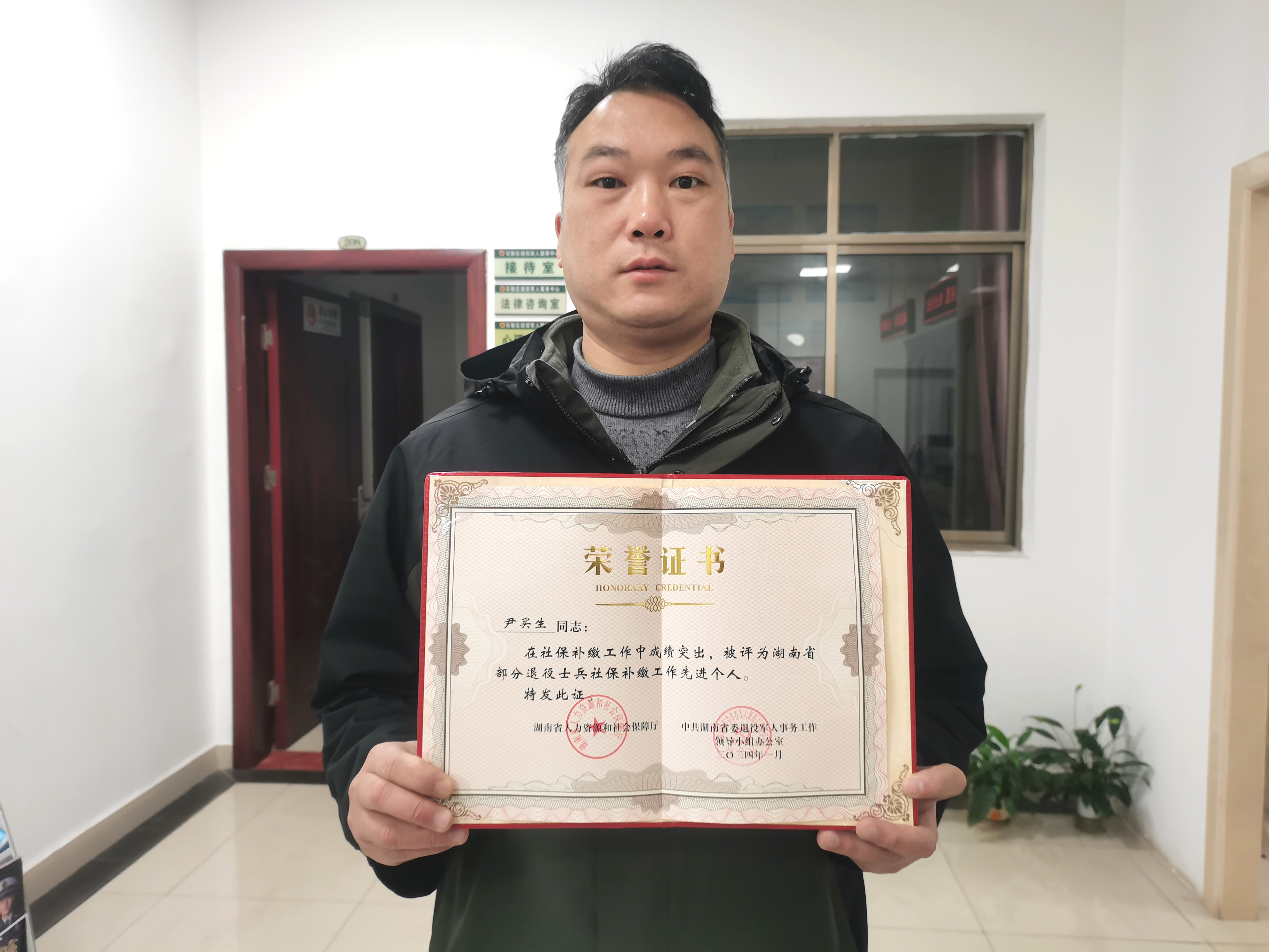 1月19日上午,湖南省部分退役士兵社保补缴工作总结表彰大会在长沙召开。表彰会为部分受表彰的先进集体和先进个人颁发奖牌、荣誉证书,衡阳市石鼓区退役军人事务局移交安置股负责人尹买生荣获“全省部分退役士兵社保补缴工作先进个人”。