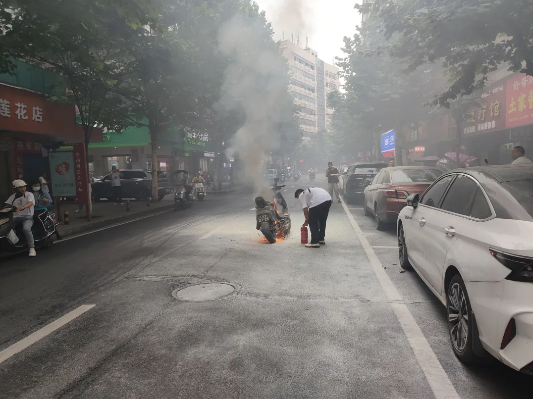 6月11日下午六点,西湖新村社区网格员朱永红正准备下班回家,刚走出社区大门至环城北路路口,就发现一男子正在骑行中的电动车冒出了烟。眨眼间,烟越来越大,朱永红明白这是电动车起火前奏,于是立即打电话通知还在加班的社区党总支书记蒋红萍,并拨打了火警电话。