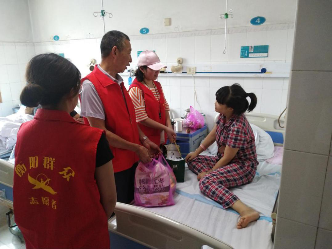 8月30日,青山街道西湖二村社区工作人员带领“衡阳群众”志愿者一起来到南华附一医院住院部,看望慰问了身患障碍性贫血的侗族居民吴冬英,为她送去党和政府的温暖与关怀。