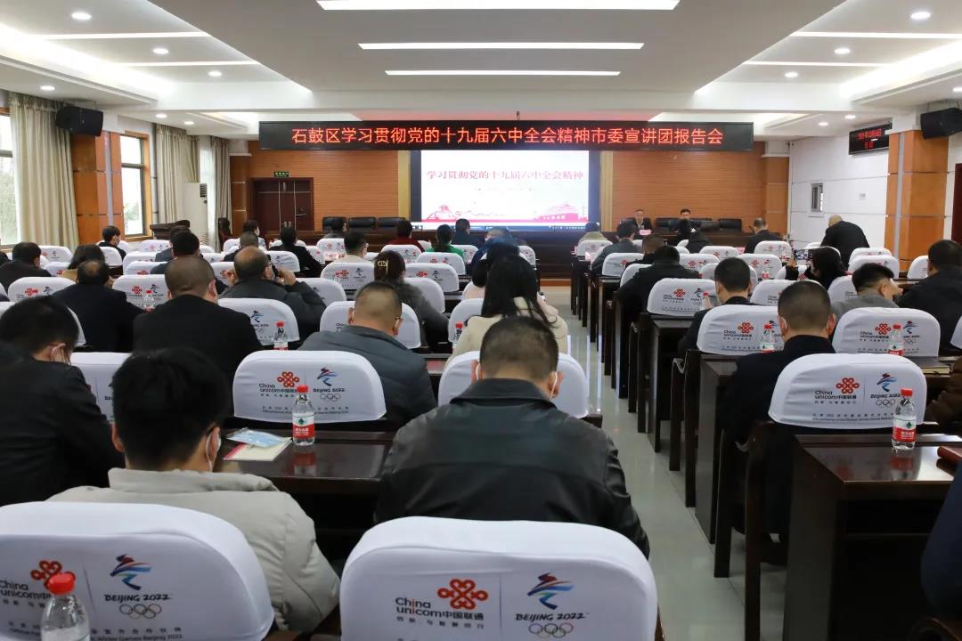 12月16日,石鼓区举行学习贯彻党的十九届六中全会精神市委宣讲团报告会,邀请市委宣讲团成员、市委组织部副部长周宏辉作专题辅导报告。区委书记颜和平主持,区委副书记、区长谢海蓉出席会议。