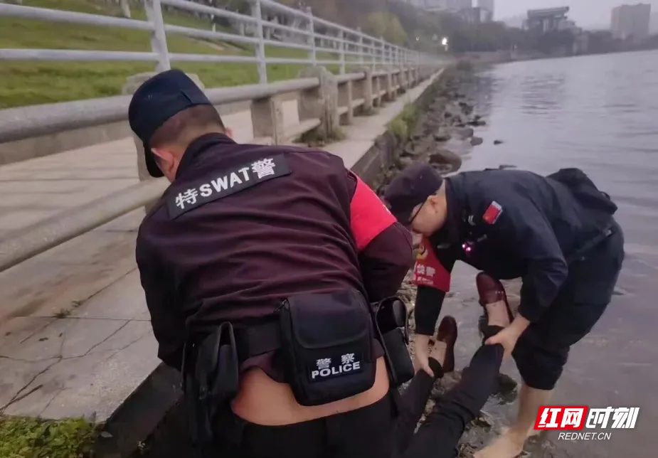 每多耽误一秒,就多一分危险。为抓住最佳救援时机,邬荣华没有丝毫犹豫,纵身跃入冰冷湖水中,奋力向落水女子游去。“别怕,别动,我来救你了!”游至身边后,他一边轻声安抚,稳定她的情绪,一边将女子救至岸边。观察其身体状况,发现落水女子因呛水和受寒而不停发抖,民警立即开展急救并联系120救援。“没事了,放心吧,有我们在!”民警蹲在落水者身边不断安慰。随后,在民辅警的助力下,女子被送至医院救治。