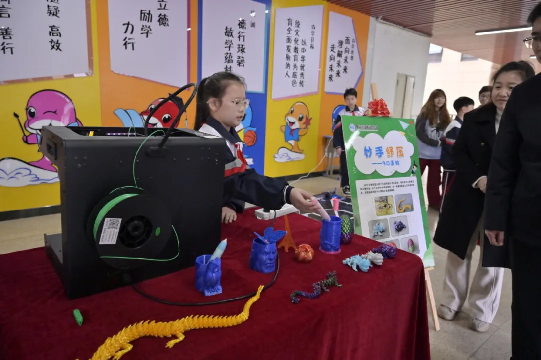在都司街碧桂园小学的“心灵释压站”,AI技术成了当之无愧的“明星”。编程机器狗时而翻跟头,时而作揖拜年,逗得围观的孩子们哈哈大笑;3D打印和航模操控区里,孩子们屏息凝神,在专注探索中忘却了平日的紧张。心理老师介绍,AI技术能迅速抓住孩子的好奇心,让他们在“玩”的状态下卸下心防,是传统谈话式辅导非常有效的补充。