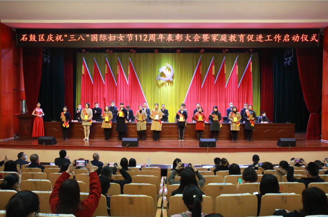 3月7日,石鼓区举办庆祝“三八”国际妇女节112周年表彰大会暨家庭教育促进工作启动仪式,隆重表彰“巾帼文明岗”“最美巾帼志愿者”“优秀妇联执委”和“最美清廉家庭”获奖者。市政协副主席、区委书记颜和平讲话并宣布工作启动,区委副书记、区长谢海蓉宣读倡议书。