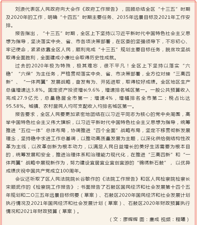 石鼓区四届人大七次会议开幕,颜和平出席,刘红丹主持,刘浪作《政府工作报告》