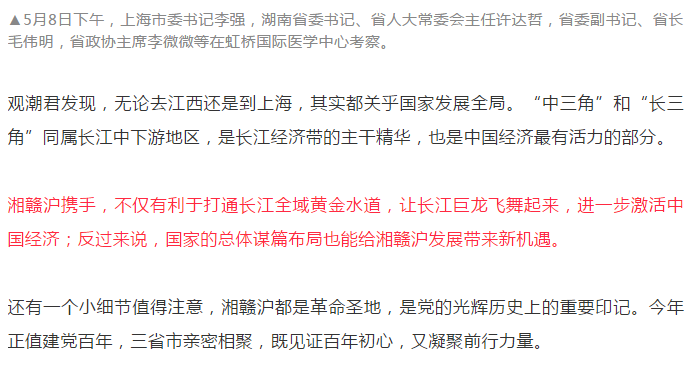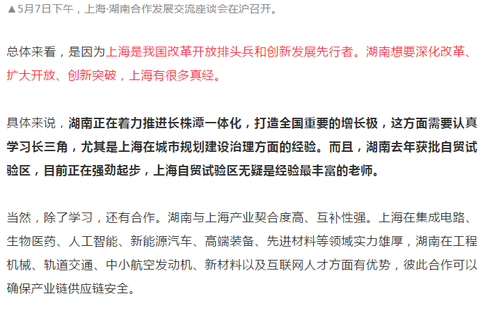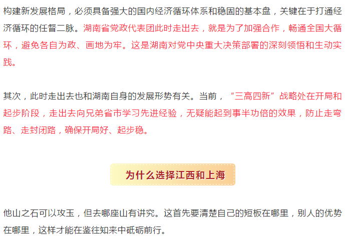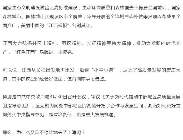 5月6日至8日,湖南省党政代表团就出去走了一遭,赴江西省、上海市考察学习,并与两省市分别举行了合作发展交流座谈会。