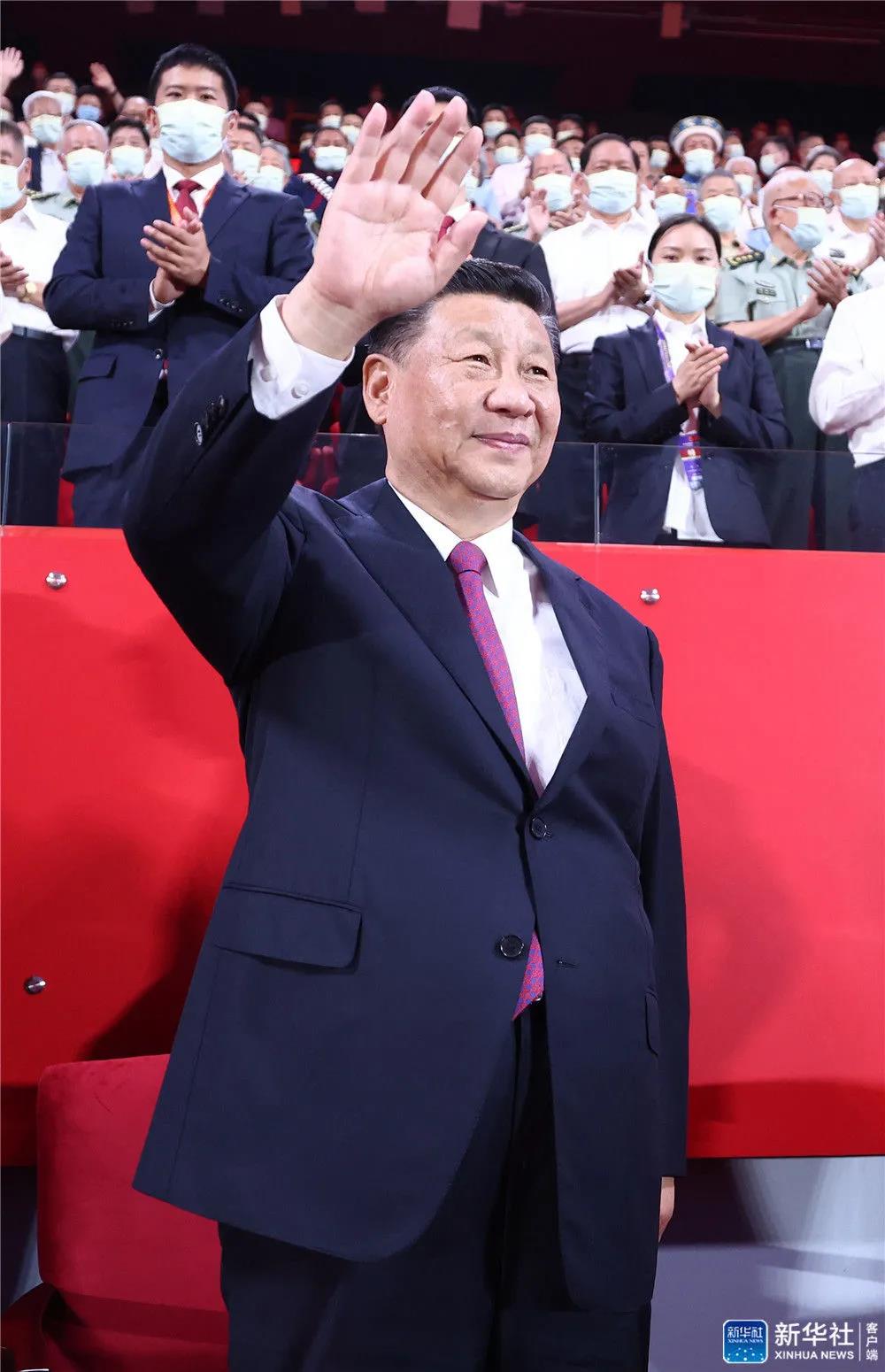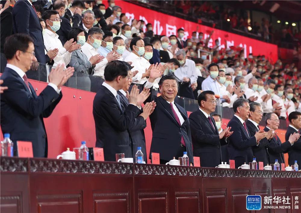 6月28日晚,庆祝中国共产党成立100周年文艺演出《伟大征程》在国家体育场盛大举行。习近平、李克强、栗战书、汪洋、王沪宁、赵乐际、韩正、王岐山等党和国家领导人,同约2万名观众一起观看演出。新华社记者 庞兴雷 摄