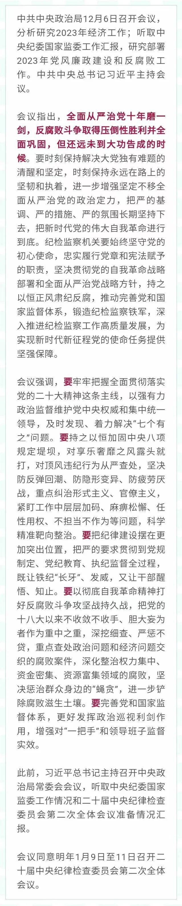 中共中央政治局召开会议 研究部署2023年党风廉政建设和反腐败工作