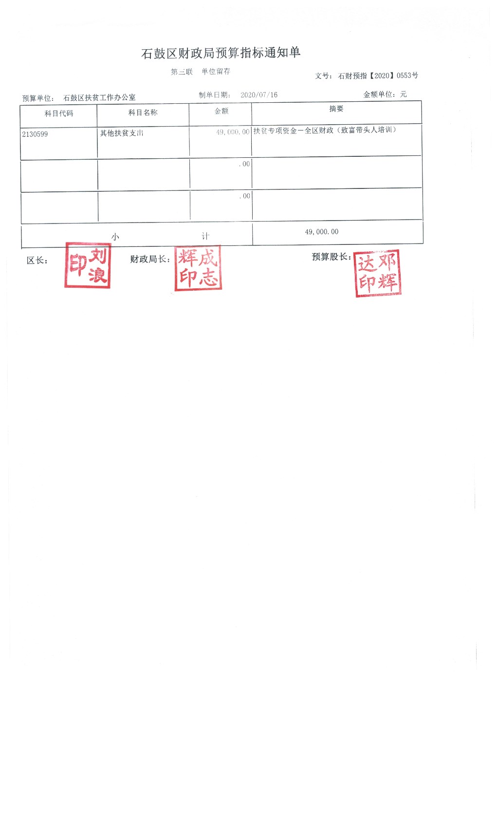 根据区脱贫攻坚需要和区扶贫办申请,同意下拨区本级财政专项扶贫资金用于致富带头人培训经费4.9万元。
