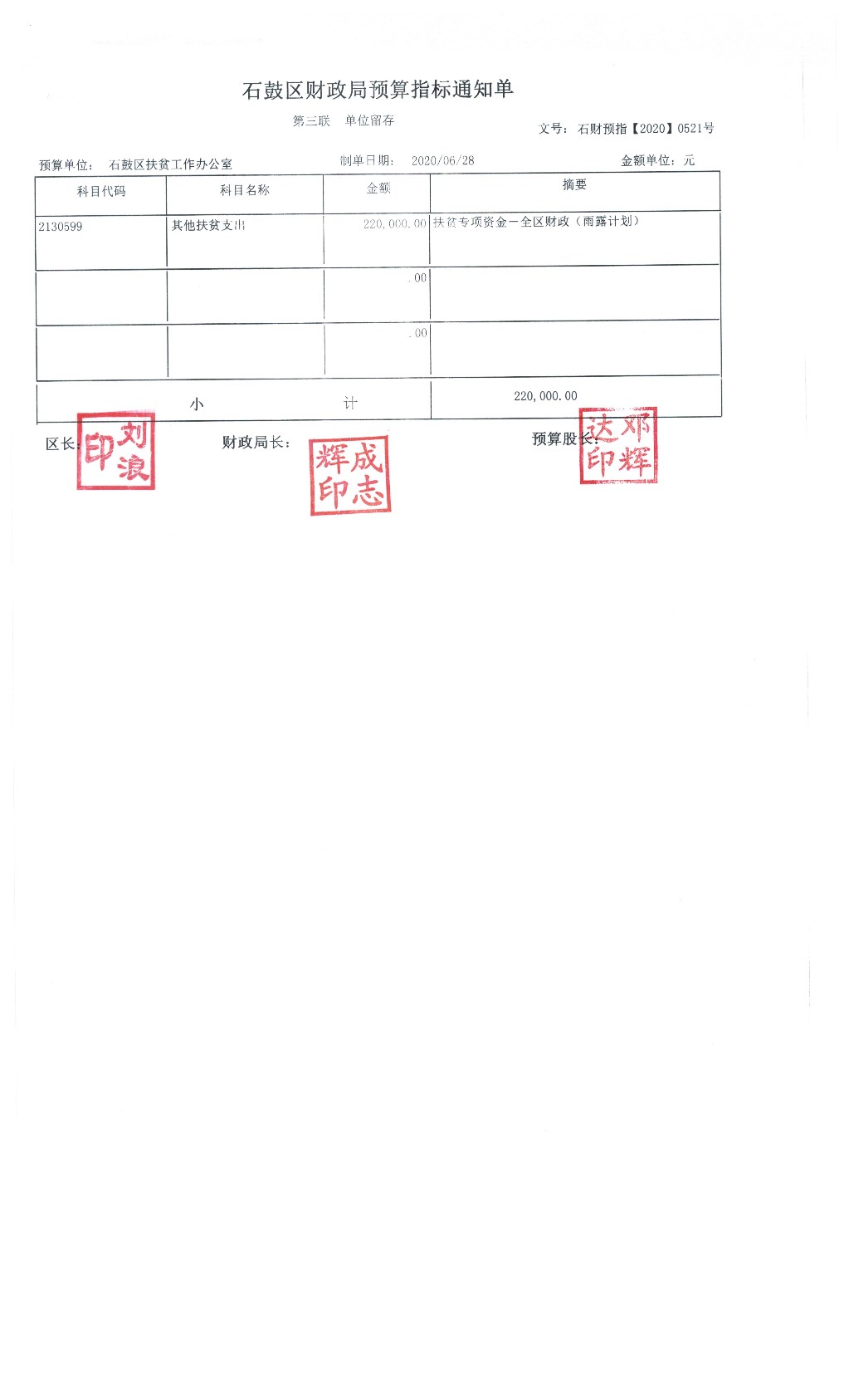 根据区扶贫需要,报区领导同意,现拨付区扶贫办雨露计划资金,详见附件。