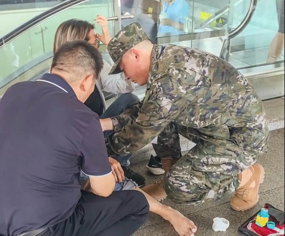 9月17日,长沙高铁南站,新兵王乐凯在起运途中听闻紧急寻医广播,征得接兵干部同意后,拎针灸包飞奔现场,伤者是一名台湾旅客。他俯身认真检查,以“暴氏长针疗法”施针。随着银针精准刺入穴位,台湾旅客疼痛迅速缓解。他在施救后默默离开,按时登车归队。 作为衡阳市石鼓区认定“非遗”项目“暴氏长针疗法”第四代区级传承人,王乐凯曾多次在寒暑假跟随伯父进山采药实操,2023年8月获高级中医针灸理疗师证书。